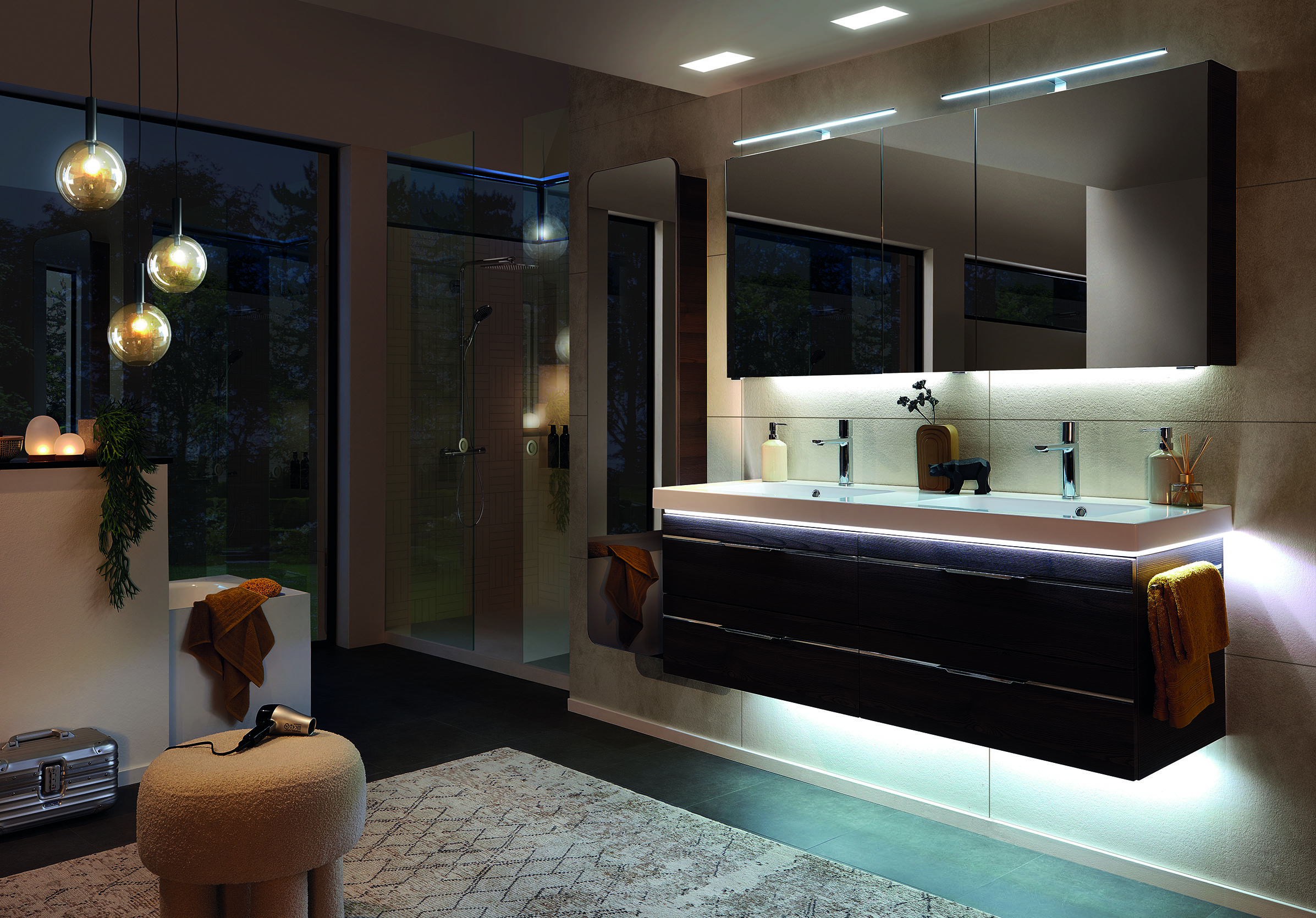 Tout est clair, tout s’éclaire ! Donnez de la vie et de l’envie à votre salle de bain avec les solutions d’éclairage intelligentes Azurlign®. En matière de domotique avancée, reconnaissant, votre meuble de salle de bain vous reconnait et détecte votre présence en s’éclairant tout seul, comme par magie. Rayonnant et chaleureux, votre mobilier illumine délicatement votre salle de bain pour votre plus grand bien être !