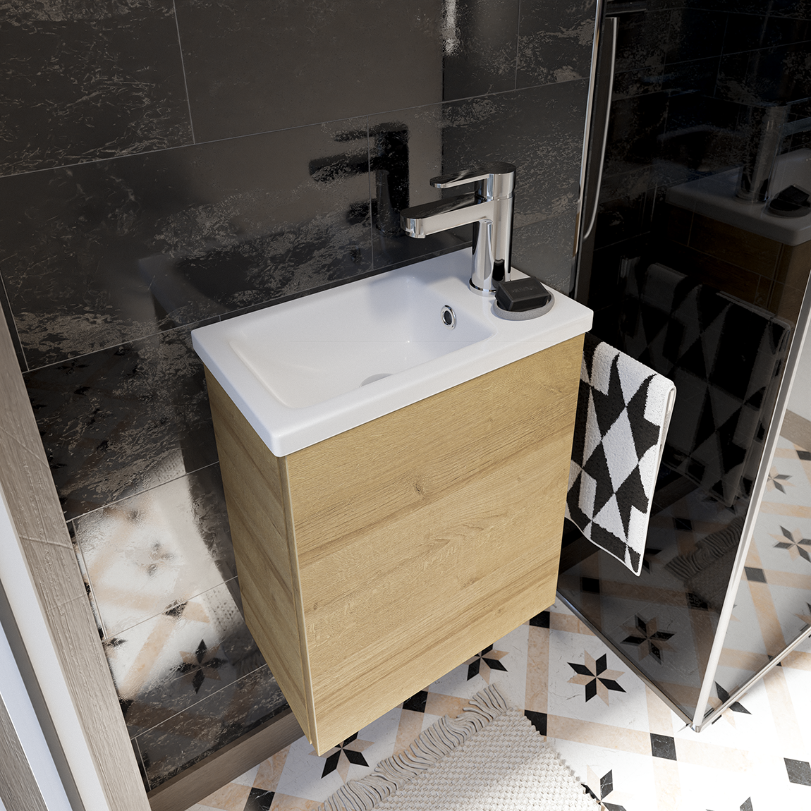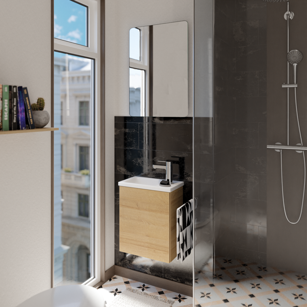 (Disponible en 42 cm, vasque à gauche ou à droite)